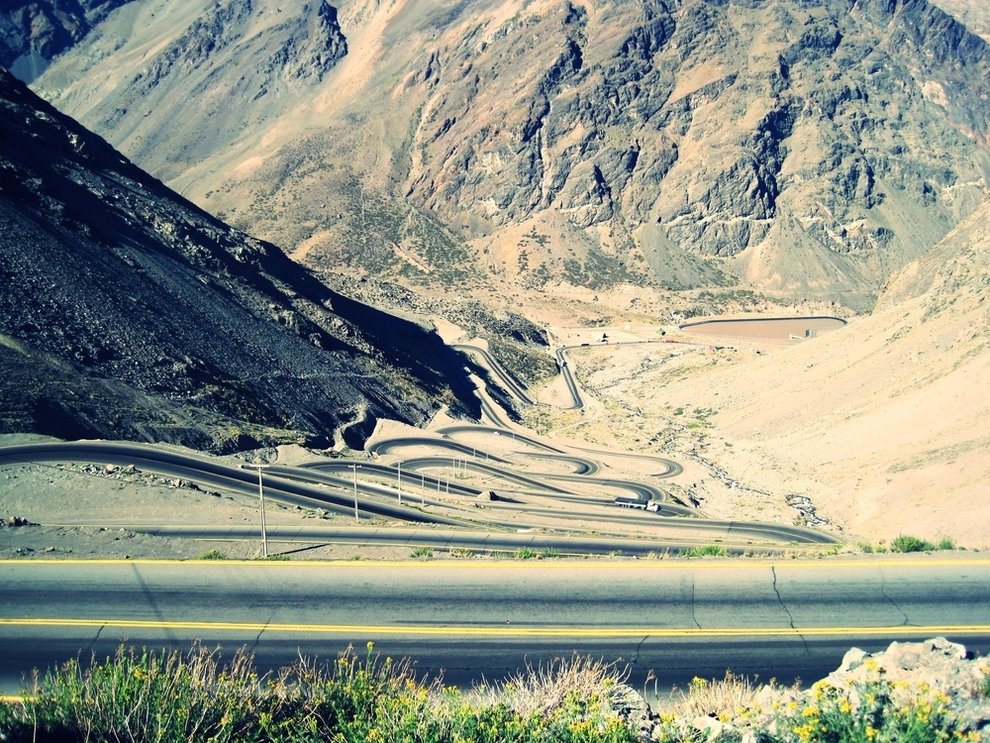 7. Перевал Лос Караколес — в Андах между Аргентиной и Чили
