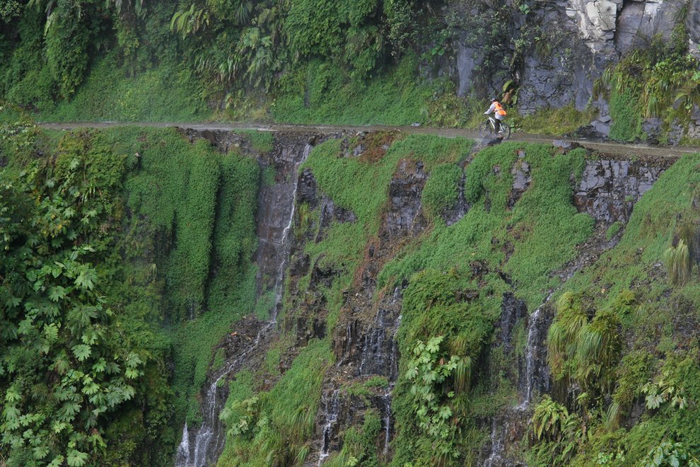 Юнгас-Роуд в Боливии, также известная как «Дит-Роуд» или «Дорога Судьбы», является одной из самых опасных дорог в мире. 38-мильная дорога на отдельных участках поднимается до 4,5 км, а также на ней встречаются участки шириной лишь в 3 метра. И в дополнение к этому безумию — нет ни одного поручня вдоль всей дороги.