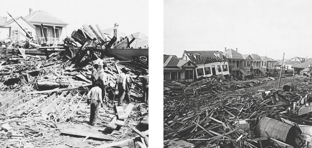 27 августа 1900 года в Мексиканском заливе сформировался Галвестонский ураган, который также известен как Великий ураган. 8 сентября 1900 года он достиг города Галвестон, штат Техас. Порывы ветра составляли 214 км/ч, из-за чего он легко срывал крыши и вырывал с корнем деревья, а после бросал их в дома. По разным оценкам, погибло от шести до двенадцати тысяч человек, было разрушено семь тысяч зданий и около десяти тысяч человек остались без крова.