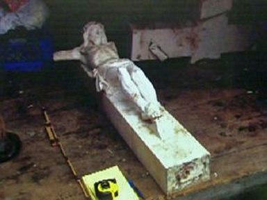 В благодарность он попросил святого отца помочь тому по хозяйству. Падре попросил его почистить статую Христа, находящуюся на улице рядом с церковью, и подле которого Дэвид провел столько бессонных ночей. За статуей давно никто не ухаживал, поэтому выглядела она не очень. Дэвид залез на стремянку и стл ее чистить, но неожиданно 300-килограммовое распятие свалилось с крепления и отдавило ему ногу.
