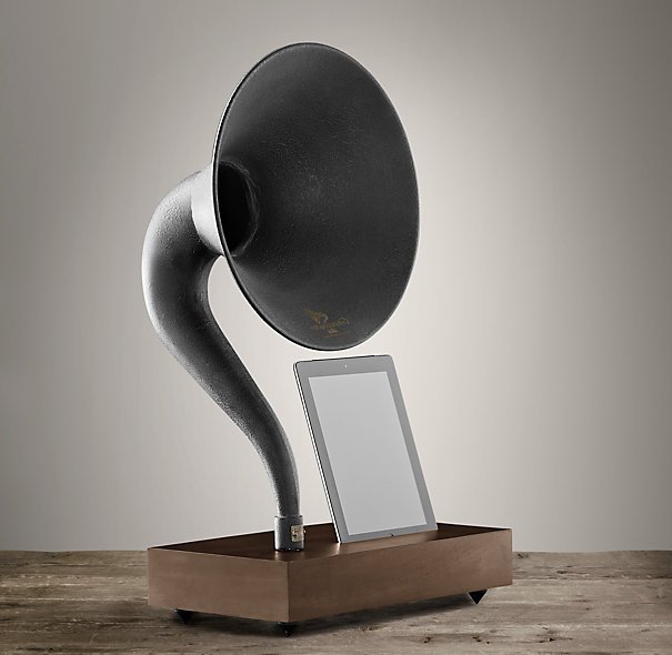 Все-таки айфон и прочая яблочная продукция хороши тем, что на них есть огромное количество разных забавных и стильных аксессуаров. Я хотел бы иметь яблочную продукцию не только по этой причине, но и потому, что у меня забрали мой планшет в вечное рабство. Среди разных интересных аксессуаров для «яблок» я нашел вот эту стильную док-станцию, усиливающую естественным путем звук твоего девайса. Поставил в станцию, включил музончик, а он такой теплый и ламповый, играет. Док-станция сделана из высококачественной древесины, а сам огромный горн сделан из стали. Наверняка в этой коробке что-то типа лабиринта, такая хрень в некоторых колонках и акустических системах встречается. Горн увеличивает громкость музыки в три раза, что делает его отличным решением для дома. В акустике можно обойтись и без цифровой обработки.