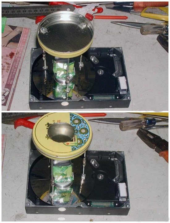 У каждого, кто хоть раз делал апгрейд своего компьютера, наверное, завалялся где-то лишний старый винчестер, например, у кого-то в редакции валяется винт на 40 гигабайт. Кому он такой нужен? Извлекаем из него пользу! Кроме HDD нам понадобится тазик с дыркой, крышка от жестяной банки, жестяная банка, велосипедные спицы и инструменты.
