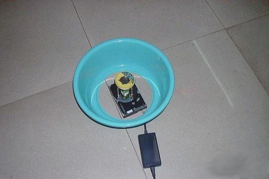 Вся конструкция ставится в центр миски или тазика без дна.