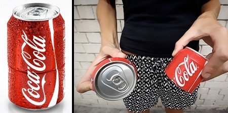Банка с виду ничем не отличалась бы от привычной нам Coca-Cola, если бы не едва заметная линия посередине. Поворотом ты можешь превратить стандартную банку в две маленькие. Правда, утолить мужскую жажду таким объемом трудновато, но выглядит очень оригинально.