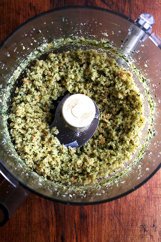 Добавить панировочные сухари и оливковое масло