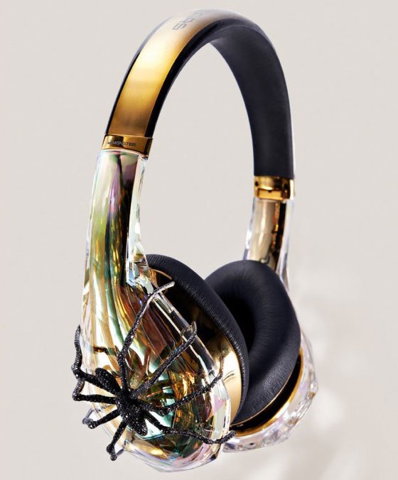 Наушники такие дорогие не потому, что для их создания использовались крутые технологии, обеспечивающие очень качественный звук. Всё дело в материале, из которого они сделаны. «Чашки» наушников сделаны из чистого золота, а пауки, сидящие на них, инкрустированы черными бриллиантами.