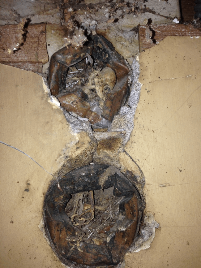 Один чувак из Америки решил убраться в квартире и перевесить шкафчики для хранения посуды в другое место. Конечно, сделал он это совсем вовремя, потому что за шкафчиками оказалась поврежденная часть стены с кучей дыр. Но это еще полбеды, ведь эту хрень можно легко заделать при наличии прямых рук. Бро обнаружил… в дымоходе, как ты думаешь, что? Выход в Нарнию, ларец с сокровищами, труп Гитлера? Нет, запредельное количество птиц. Мертвых птиц! Епт! Чувак вытащил 18 штук, находившихся на разных стадиях разложения. Несколько черепов мертвых птиц и еще парочку тушек. И там осталось еще… Не знаю, сколько еще бро вытащил из дымохода, но ситуация показательна тем, что дымоход, как бы пошло это ни звучало, надо чистить регулярно. Чтобы не было таких сюрпризов.