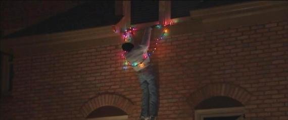Чувак по имени Мерфи Лейк получил нагоняй от пожарной службы за сомнительную гирлянду, которую приписыпалось снять. Мерфи решил заменить гирлянду другой гирляндой, но ему помешало что-то в лучших традициях американского рождественского кино. Чувак стоял на лестнице в то время, как она стала угрожающе шататься назад и вскоре упала, но наш герой не растерялся и повис на руках на крыше. Проходившие мимо прохожие были уверены, что это просто рождественская игрушка. Чувак таким образом провисел больше часа, пока кто-то, кто понял, что манекен не может орать таким голосом, не вызвал полицию, которые сняли Мерфи с крыши.