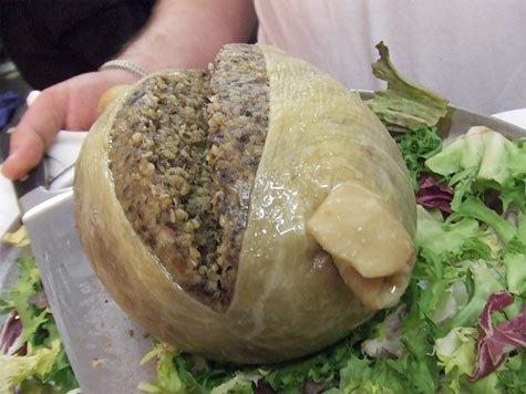 Нет, это не детские пеленки. Совсем. Хаггис — национальная еда Шотландии, которая представляет собой бараний желудок, в который запихнули различные органы барана. Потом это все варится. Запретили блюдо не из-за того, что это, черт возьми, вареный бараний желудок, а из-за того, что в нем содержатся легкие барана. Печень, почки, желудок вареный, сердце… нормально все. А вот легкие нельзя! Посему и запретили.